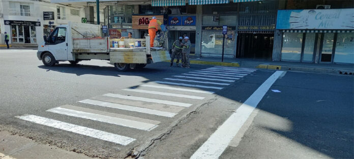 Según señalaron desde el municipio, este jueves se continuará con el pintado de las sendas peatonales sobre calle 9 de Julio.