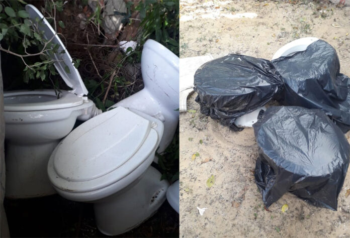 A su vez, personal motorizado informó que se entrevistó con un vecino del Barrio 150 Viviendas, quien manifestó que en hora de la mañana fue a buscar leña al frente de la casa de su madre en calle Santa Teresita al 400 y encontró sobre el zanjón (3 inodoros marca Capea, uno de ellos sin la tapa sanitaria.