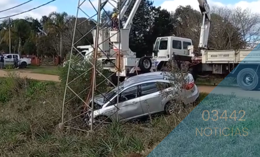 Se trató de un Ford Focus conducido de este a oeste por una vecina de La Histórica que impactó con una torre de alta tensión. ENERSA trabajaba en el lugar.