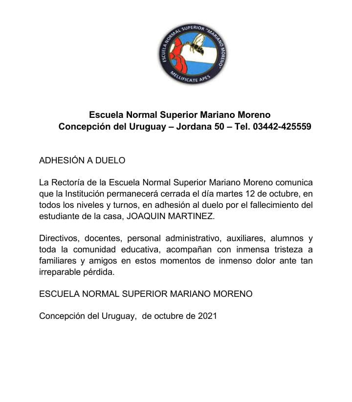 A raíz del lamentable suceso, causó profundo dolor en la comunidad de Concepción del Uruguay.