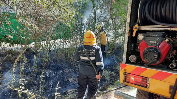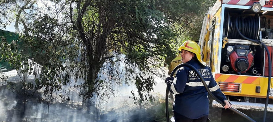 Personal del Cuerpo de Bomberos Voluntarios de Concepción del Uruguay, acudieron este sábado a sofocar un siniestro generados en terrenos del oeste de la ciudad.