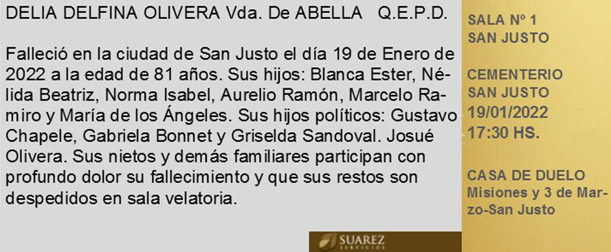 DELIA DELFINA OLIVERA Vda. de ABELLA QEPD