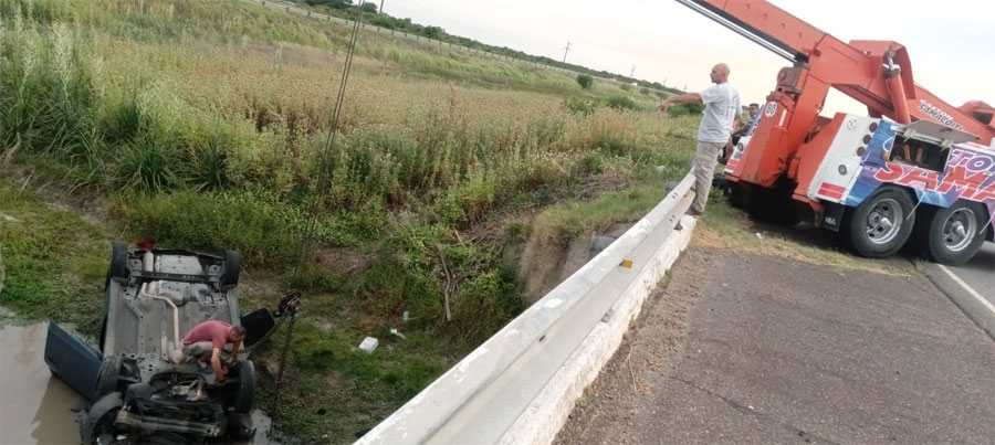 Según se pudo saber, el automóvil, un Chevrolet Agile, circulaba desde Entre Ríos a Buenos Aires, y por causas que se trataban de determinar, salió de la calada y cayó quedando en posición invertida sobre el agua.