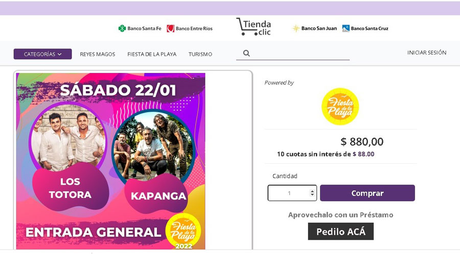 La cartelera de artistas que presenta la edición 2022 de la Fiesta Nacional de la Playa ha generado una gran expectativa en diferentes puntos de la provincia de Entre Ríos. En ese marco, además de promover un precio popular de las entradas, la Comisión Organizadora ha logrado un acuerdo con Banco Entre Ríos que permite a los clientes de la entidad comprar sus entradas hasta en 10 cuotas sin interés.