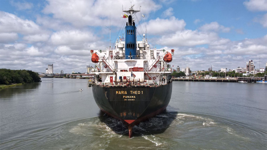 El buque María Theo, tiene previsto completar una carga de troncos de pino de 18000 toneladas y espera luego completar la carga en puerto Ibicuy, este cargamento está a cargo de la firma Urcel y es con destino a la india.