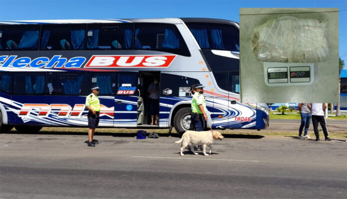 El personal destacado en el puesto interceptó la marcha de un colectivo de larga distancia de la empresa Flecha Bus, interno 78066, el que venía de la ciudad de Paso de los Libres, Corrientes, con destino a Retiro, provincia de Buenos Aires, realizando un control de rutina en los equipajes y personas.