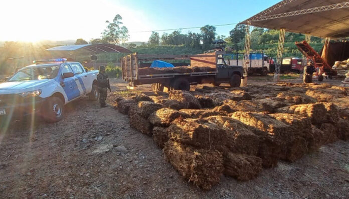 Ante la presunción de estar frente a un ilícito, los efectivos se dirigieron al lugar y, tras dar la voz de alto, lograron detener a diez hombres y constatar que intentaban trasladar ilegalmente 175 fardos de tabaco, con un peso de más de seis toneladas.