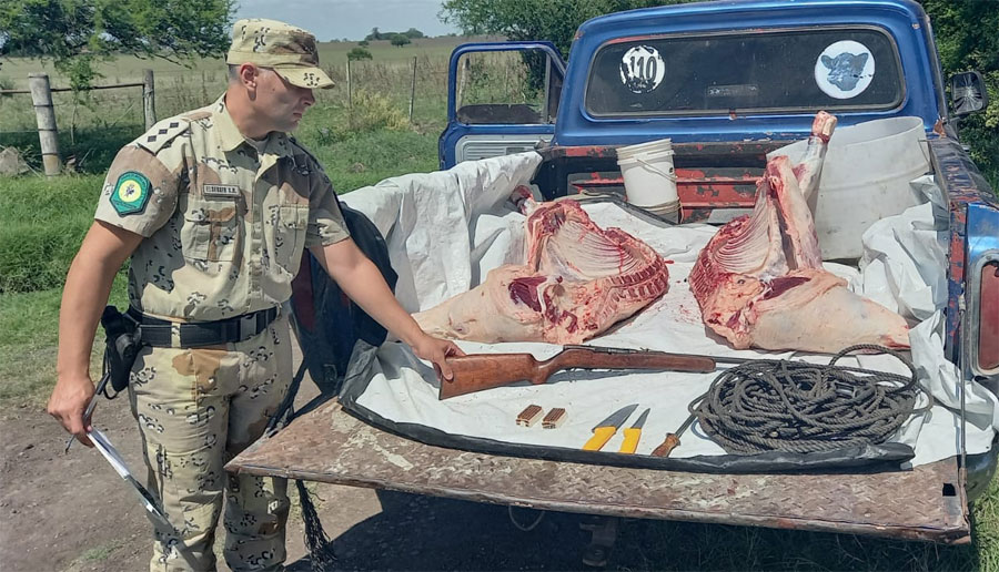 Interceptan a carnicero con un animal faenado y un arma  de fuego en su camioneta