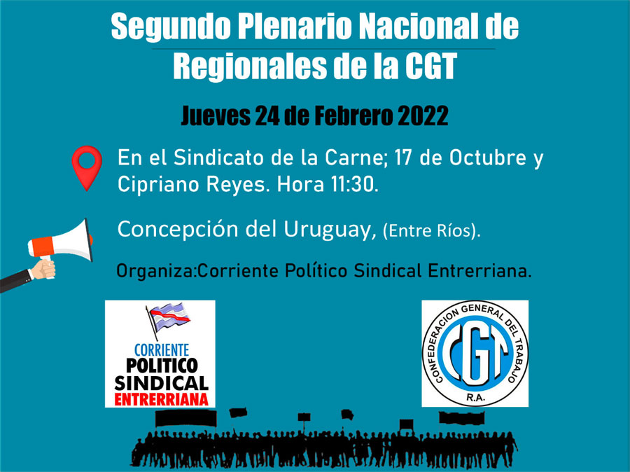 Tendrá lugar este jueves por la mañana en Concepción del Uruguay, el Plenario Nacional de Regionales de la CGT.