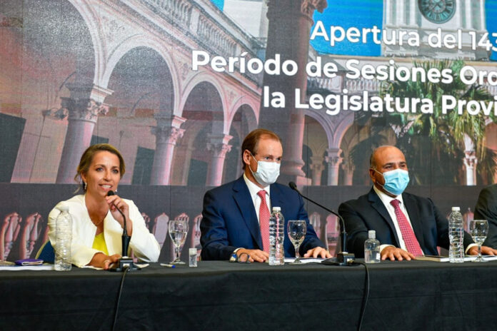 Tal y como lo fija nuestra Constitución Provincial, el gobernador Gustavo Bordet emitió su discurso anual en el que informó sobre el estado general de la administración pública a las y los legisladores entrerrianos. Lo hizo este martes en el Centro Provincial de Convenciones (CPC) de Paraná.