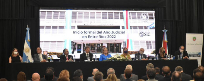 Con la presencia del presidente de la Corte Suprema de Justicia de la Nación, Horacio Rosatti; la presidenta del Superior Tribunal de Justicia de Entre Ríos (STJER) Susana Medina, dio inicio formal a la Apertura del Año Judicial en la provincia. Tras los actos protocolares de la ceremonia, Medina hizo una breve reseña de lo actuado en 2021 y adelantó que seguirá trabajando en una Justicia de puertas abiertas. Anunció que habrá cambios en la mecánica de ingreso para facilitar la inclusión de la discapacidad; impulsará el lenguaje claro, llano y transparente, y garantizó que, aún con menos recursos, fortalecerá la prestación del servicio de Justicia y trazó un croquis de obras e inversión en equipamiento para el buen funcionamiento en todas las jurisdicciones. Lo hizo junto al vicepresidente del STJ, vocal Daniel Carubia, y los vocales Germán Carlomagno, Bernardo Salduna, Claudia Mizawak; Martin Carbonell y Gisela Schumacher. También se hizo presente en la ceremonia a través de una salutación el vocal Miguel Ángel Giorgio.