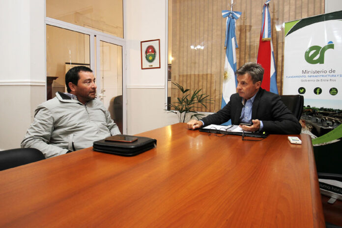 Trabajan en las gestiones necesarias para la ejecución de obras de saneamiento y pavimento urbano para Colonia Elía. El ministro de Planeamiento, Marcelo Richard, junto al intendente de la localidad, Gabriel Barbará, evaluaron el avance de los proyectos.