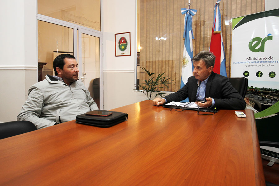 Durante la reunión de trabajo realizada en las oficinas del ministerio de Planeamiento, Infraestructura y Servicios, el ministro Marcelo Richard, repasó junto al presidente municipal de Colonia Elía, el estado de avance de los proyectos de las obras de cloaca y pavimento urbano.