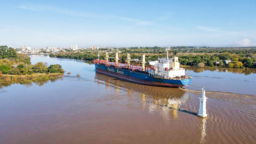 El buque es un granelero de cinco bodegas del tipo Handy Size que llega a aguas argentinas proveniente del puerto de Imbitubá, Brasil.