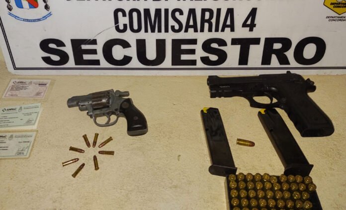 ALLANAMIENTO POSITIVO EN CONTEXTO DE VIOLENCIA GÉNERO: Personal de Comisaría Cuarta, cumplimentó mandamiento emanado del juzgado de garantías a/c. Dr. German Dri, (Allanamiento y registro domiciliario, Requisa Vehicular, búsqueda de todo tipo de arma de fuego y/o cartuchería).- Se allano una vivienda sita en calle Pte. Illia al 300, procediendo a la notificación de la medida a la propietaria de 74 años, arrojando el procedimiento resultado positivo, secuestraron un revolver calibre 22 largo, marca Bagual, con tambor cargado con 10 municiones marca súper, con cachas plásticas negras, una pistola 9mm marca Taurus, de color negro, dos cargadores de pistola 9mm, una caja de municiones marca Waffen con 47 cartuchos.-