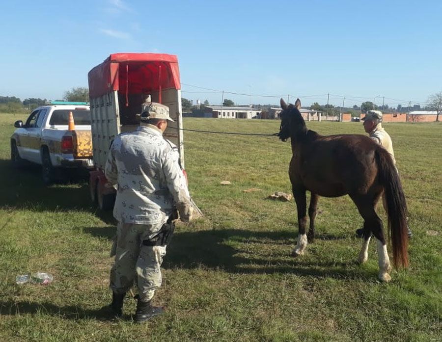 Así, a primeras horas de la mañana, se tomó conocimiento de la presencia de un caballo suelto en la Av Uncal, que se desplazaba libremente por el lugar entre ocasionales vehículos, representando además un peligro para el propio animal.