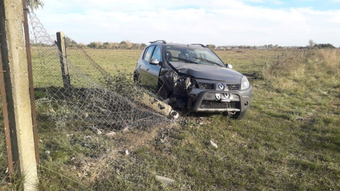 Por causas que se tratan de establecer un Renault Sandero Stepway, conducido por un hombre, impactó con un poste de alambrado y una viga de hormigón de un cerco perimetral.