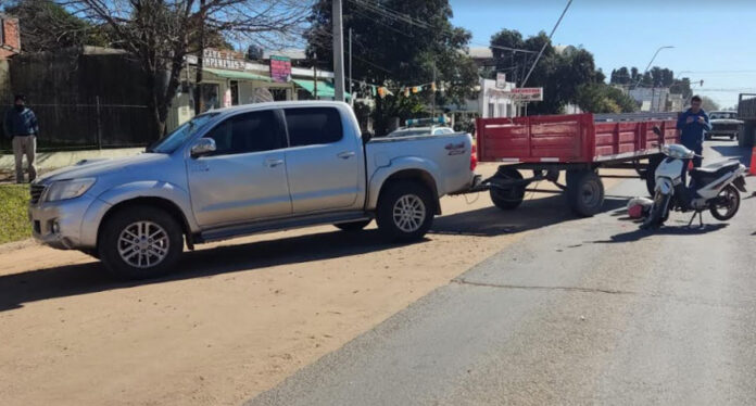 Fue al llegar a calle Caseros que esta colisiona con una camioneta marca Toyota Hilux, conducida por un hombre de 41 años de edad, el cual lo hacía en sentido inverso.