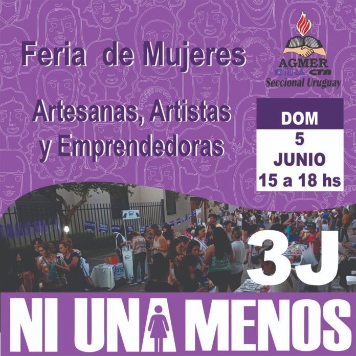 Domingo 5 de junio entre las 15 y las 18 horas, realizaremos una Feria de artesanas, artistas y emprendedoras. La misma se ubicará frente a la seccional de AGMER Uruguay (calle Almafuerte entre 3 de febrero y Mariano Moreno) Invitamos a compartir una tarde reflexión, en compañía de artistas y otras actividades.