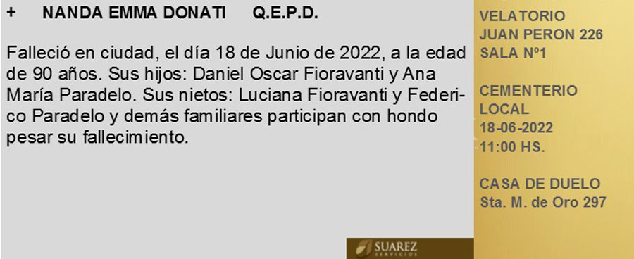 Fúnebres NANDA EMMA DONATI QEPD junio 18, 2022 Más Fúnebres Fúnebres Jorge Roberto Fontana QEPD Fúnebres JOSÉ ERNESTO GARRO “PEPE”. Q.E.P.D Fúnebres Lorenzo Eugenio Vouilloud Q.E.P.D