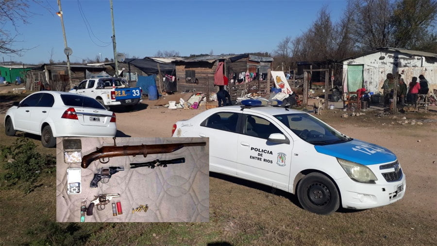 Efectivos de la Policía dependientes de la Jefatura Departamental Uruguay, afectados a Comisaria Cuarta, Comisaria de Minoridad y Personal de las Divisiones Investigaciones, Criminalística y Toxicología, realizaron este viernes dos procedimientos en sendas viviendas contiguas del Barrio Ex Basural, relacionados a una causa por amenazas en contexto de violencia de género.