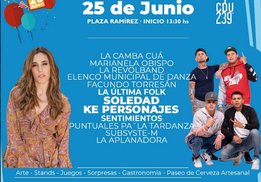 Concepción del Uruguay se prepara para vivir este sábado 25 de junio, sus 239 años con una gran fiesta popular, en la que se pretende disfrutar de la cultura y la música, con importantes presentaciones artísticas sobre el escenario mayor que estará situado en la esquina de San Martín y Juan Domingo Perón. Todo esto con entrada libre y gratuita.