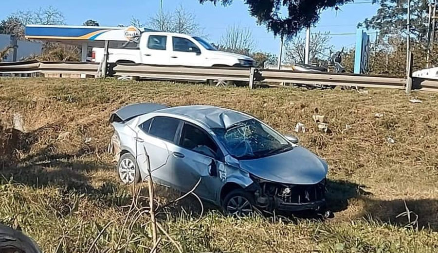 Al llegar los agentes policiales, constataron que se trataba de un automóvil que circulaba la rotonda y que por causas que se trataban de determinar pudo ser la velocidad) salió de la cinta asfáltica y tras pegar en los guardarraíles, cayó en la zona de las alcantarilla fuera de la ruta.