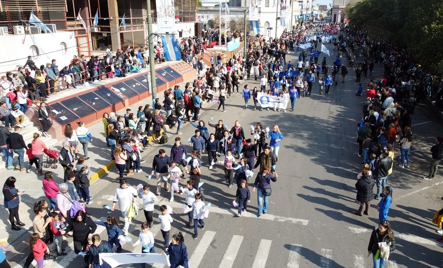 Los colores celestes y blancos invadieron rápidamente el centro de Concepción del Uruguay con la presencia de cientos de abanderados y escoltas de los establecimientos educativos que decidieron participar del acto con la presencia de 151 establecimientos educativos y de formación, 16 clubes, 5 escuelas de danzas, la comunidad árabe, más de 30 motos y 127 vehículos entre las fuerzas de seguridad, el Ejército argentino, Bomberos, autos antiguos y clásicos y motos de todas las marcas y años. La propia municipalidad, presentó 18 vehículos adquiridos en la presente gestión.