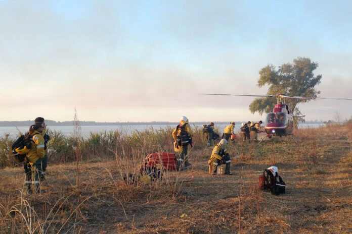 Para el combate, se montó un operativo que contó con personal operativo y logístico de Defensa Civil, personal provincial del Plan de Manejo del Fuego, brigadistas forestales de la Policía de Entre Ríos, brigadistas de Respuesta Ambiental de la Secretaría de Ambiente, personal del Servicio Nacional de Manejo del Fuego, personal técnico y logístico de Defensa Civil Buenos Aires, Compañía de Ingenieros QBN y Apoyo a la Emergencia 601 del Ejército Argentino , Bomberos Voluntarios de San Nicolás y medios aéreos del Sistema Nacional de Manejo del Fuego.