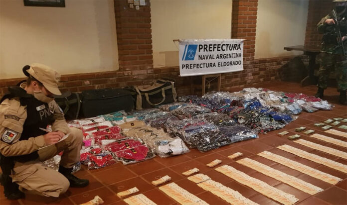 Efectivos de la Prefectura Naval Argentina incautaron un cargamento de mercadería ingresada al país de manera ilegal y más de 2.250.000 millones de pesos en efectivo, en un procedimiento realizado en la localidad misionera de Eldorado.