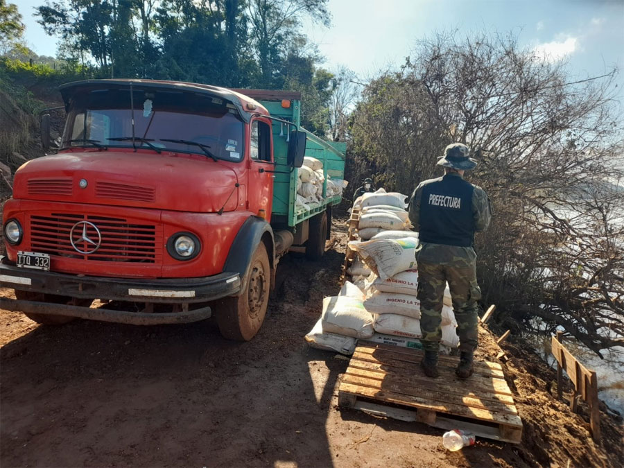 A raíz de esto, Prefectura se aproximó al lugar e interceptó a dos hombres que estaban manipulando 124 bolsas, que en su interior contenían 50 kilogramos de soja cada una, sin su correspondiente aval aduanero.