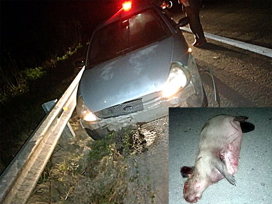 Fue alrededor de las 1iete de la mañana, cuando en animal silvestre se interpuso en el camino del automóvil, que lo chocó de lleno, lo que provocó despiste del vehículo e impacto contra el guardarraíl.