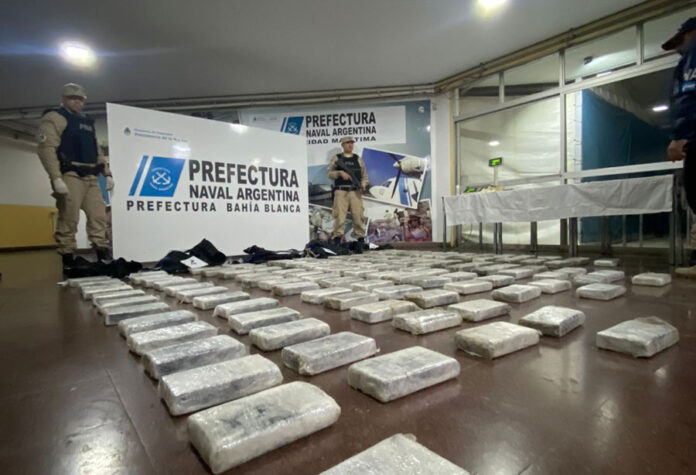 Personal de la Prefectura Naval Argentina secuestró más de 170 kilos de cocaína que estaban flotando en el canal de acceso al puerto de Ingeniero White, Buenos Aires.