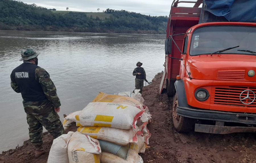 Efectivos de la Prefectura Naval Argentina incautaron un cargamento de 10.400 kilos de granos de maíz, que iban a ser exportados ilegalmente, desde la costa misionera de El Soberbio hacia la República Federativa de Brasil.