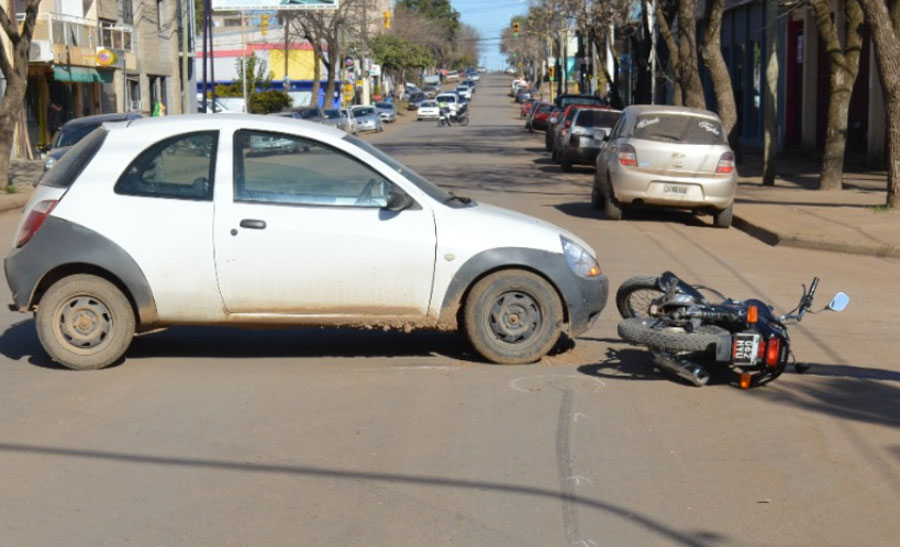 Personal policial, de la Jefatura Colón, intervino este jueves por la mañana por un siniestro vial ocurrido en calles San Martin y Conté Grand, que fue protagonizado por una motocicleta marca Yamaha modelo YBR 125cc y un Ford Ka.