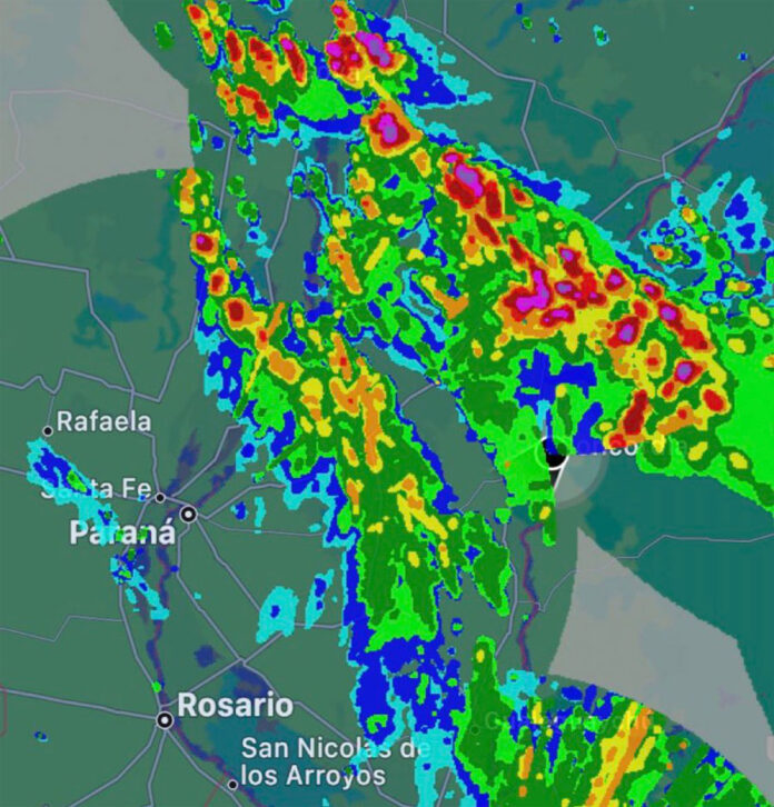 Impresionantes rachas de viento de 146,4 km/h se observaron en una estación meteorológica privada en Paysandú, Uruguay, junto a Concepcion del Uruguay del lado Argentino, tras el paso de una supercélula intensa entre el final de la mañana y la madrugada del Lunes. Este valor es consistente con la magnitud de los daños observados en la región. (Fuente BarometroZarate)