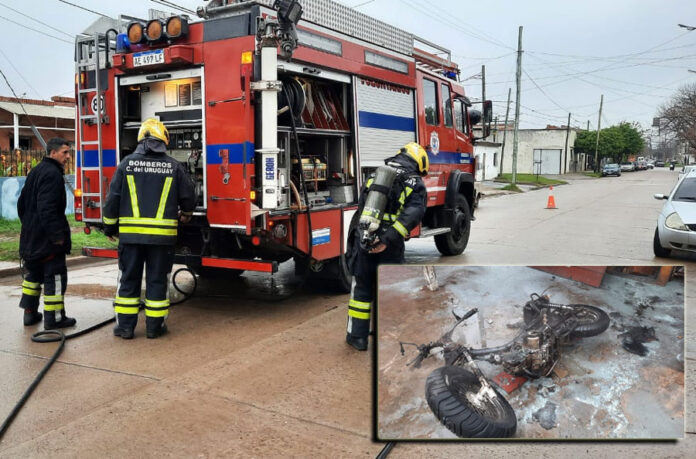 Una salida más tuvieron los Bomberos Voluntarios en horas de la mañana de este sábado, cuando se produjo el incendio de una moto.