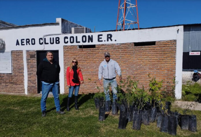 Dándole continuidad al plan de reforestación de especies nativas de la Delegación Argentina de la Comisión Administradora del Río Uruguay a través del cual se entregarán más de 2400 árboles a las diferentes ciudades del corredor del Río Uruguay, la Delegada de CARU Miriam Soledad Lambert, entregó 44 árboles en la ciudad de Colón. En total se entregaron 40 ejemplares solicitados por el AeroClub de esa ciudad, y otros 4 árboles fueron para el Dispositivo Territorial Comunitario que la SEDRONAR tiene en Colón. El programa había comenzado el lunes en Gualeguaychú, donde José Lauritto entregó otros 300 árboles.