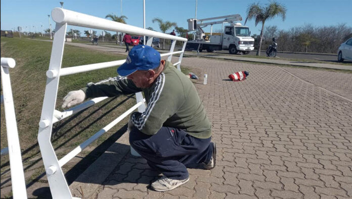 En la Isla del Puerto se realizan variados trabajos de acondicionamiento y embellecimiento. Esto incluye a su vez, nivelación de playas, pintado de las columnas de alumbrado público y de las barandas del paseo.
