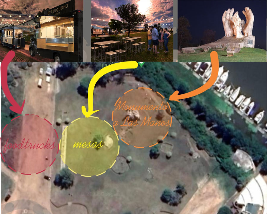 El lugar elegido es el Sector denominado Parque de “Las Manos” o “Salamanca”. El proyecto que ya fue analizado por el Sr. Intendente y su equipo de profesionales, tiene el visto bueno y solo resta diagramar tareas a realizar para poner en valor el sector. En lo que respecta al proyecto, tiene estipulado la colocación de carros de comidas, bebidas y otras opciones en un sector, donde los comerciantes podrán ofrecer sus ofertas Gastronómicas y por otro sector la instalación de puestos de artesanos y feriantes, todo ello acompañado del gran parque verde que da la naturaleza para instalar sillas, mesas y un pequeño escenario, acompañado por una hermosa vista al río.