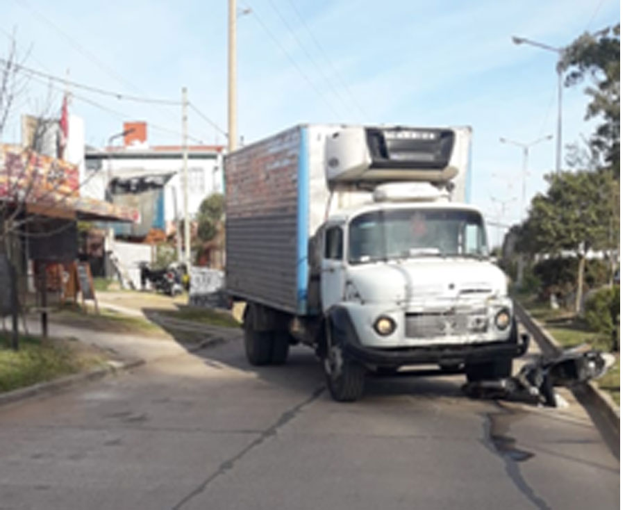 El hecho ocurrió en calle Santa  Rosa, entre Moreno y Brown, donde un camión marca Mercedes Benz modelo 1114 conducido por un hombre de 29 años de edad quien circulaba en sentido Oeste-Este colisiona{ocon un motovehículo marca Gilera modelo Smash 110cc conducido por un hombre de 30 años el cual circulaba en el mismo sentido.