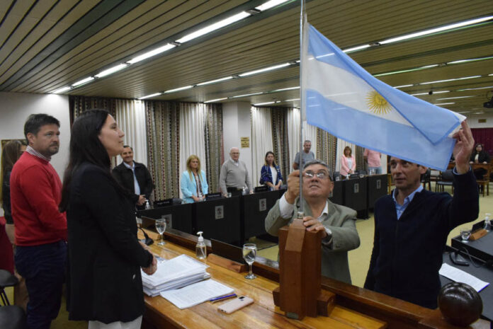La sesión presidida por Ricardo Vales, comenzó con el tradicional izamiento del pabellón nacional, en esta oportunidad a cargo de los concejales Hernán Marcó (Juntos Por el Cambio) y Ángel Salamonini (Frente Creer Er). En esta oportunidad estuvieron ausentes las concejalas Graciela Guerrero (Frente Creer Er) y Rosana Squivo (Juntos por el Cambio).