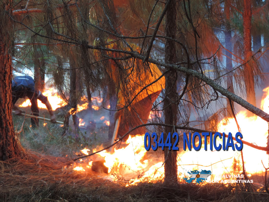 Tal como lo adelantáramos de manera exclusiva en 03442, se desató un incendio en un pinar de la zona de los ex campos de Minetto, Arroyo Molino, al norte de Concepción del Uruguay.