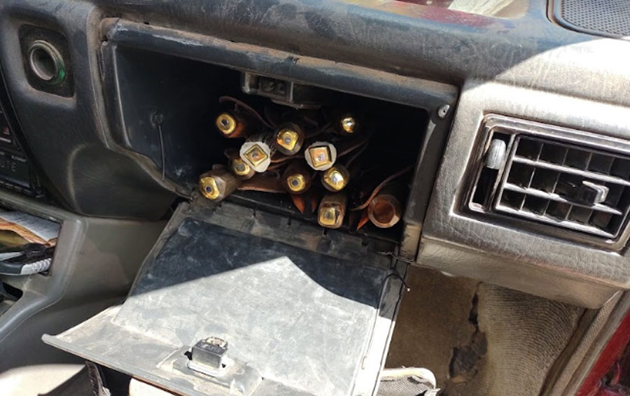 Algunos de éstos iban ocultos en la guantera del auto, mientras que los restantes iban escondidos en un portatermo que el conductor lleva consigo.