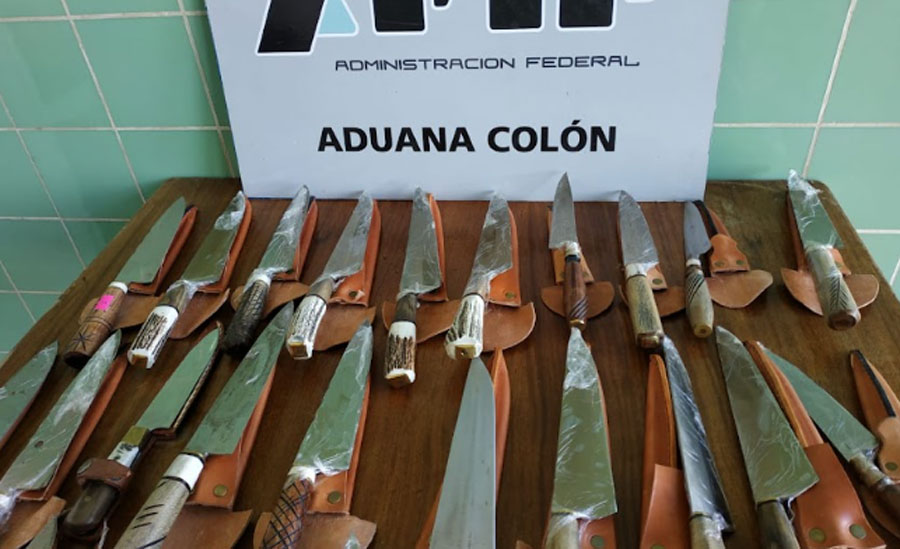 El sujeto estaba siendo sometido a una verificación vehicular de rutina en el Área de Control Integrado del Puente Internacional General José Gervasio Artigas (que une la ciudad de Colón, Entre Ríos, con Paysandú, República Oriental del Uruguay) cuando, con suma perspicacia, los agentes aduaneros constataron que en su automóvil, aquél llevaba nada menos que 60 cuchillos con sus respectivas vainas.