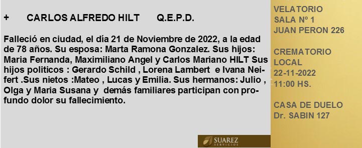 Fúnebres Carlos Alfredo Hilt QEPD noviembre 22, 2022 Más Fúnebres Fúnebres Justo Rufino Conde Q.E.P.D Fúnebres Justo Rufino Conde Q.E.P.D Fúnebres Jorge Roberto Fontana QEPD