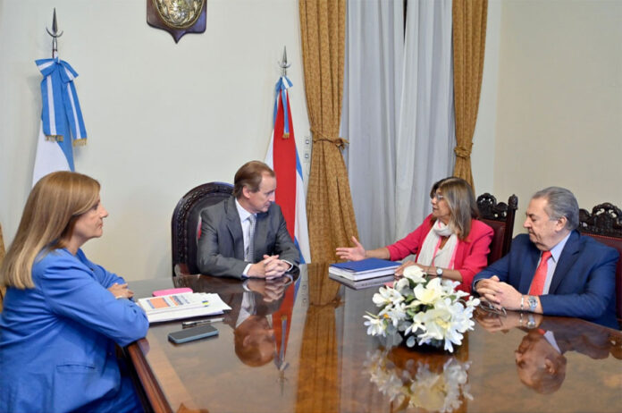 Esta mañana, la vocal Claudia Mizawak y el vocal Daniel Carubia, fueron recibidos por el gobernador Gustavo Bordet y le hicieron entrega de las propuestas y aportes de la Sala Penal para un mejor funcionamiento del sistema penal en la provincia. De la audiencia participó la ministra de Gobierno y Justicia, Rosario Romero.
