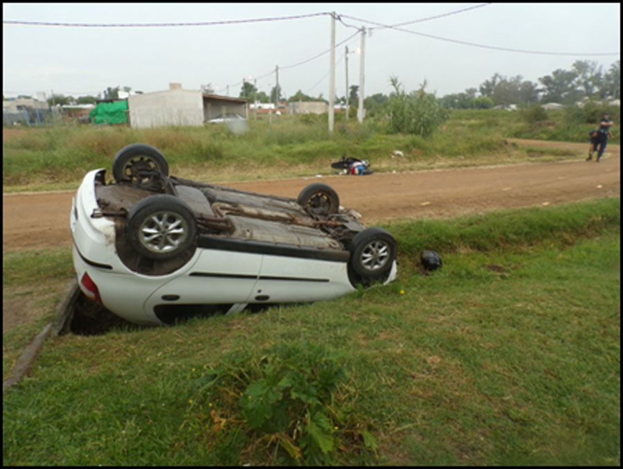 Como consecuencia del siniestro se produjo el vuelco del automóvil que quedó volcado con las ruedas para arriba dentro de una cuneta al lateral de la calle.