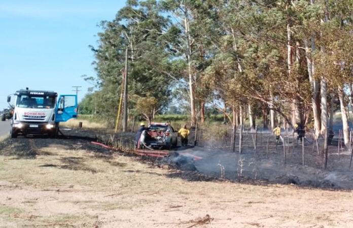 Personal del Cuerpo de Bomberos Voluntarios de las localidades de Caseros y San Justo, en trabajo conjunto lograron sofocar un incendio de campo ubicado sobre ruta Provincial 23.