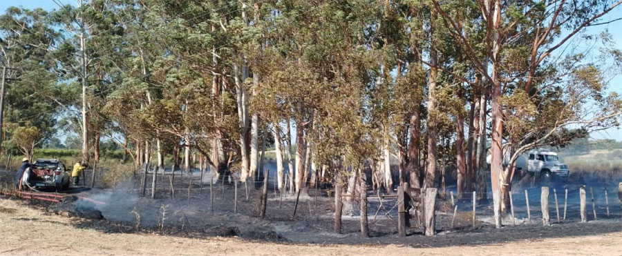 Fue este domingo pasadas las 15:30 horas, cuando recibieron el alerta, de que la caída de un cable, generó fuego en los pastizales, en una plantación de eucaliptus, propiedad de un vecino de la zona, lo que causó el principio de incendio de árboles.
